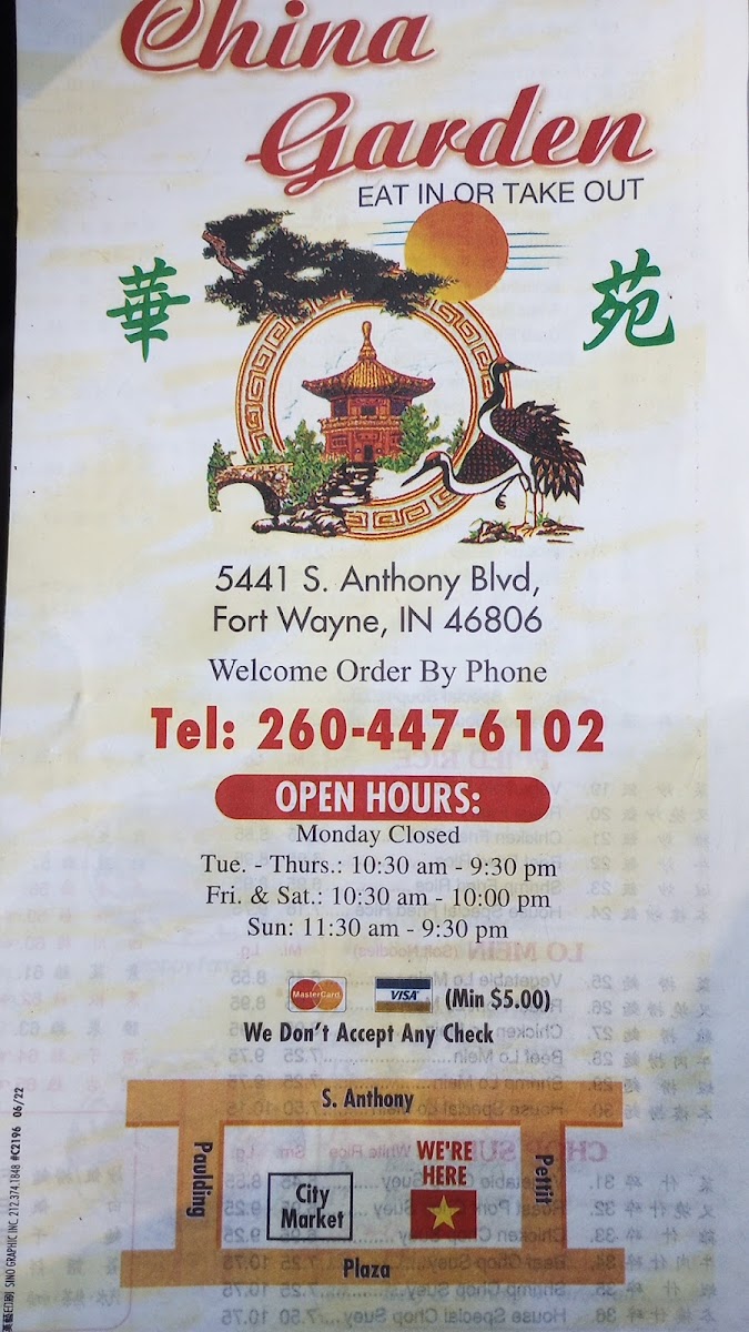 There aren't any other Chinese food restaurants in Fort Wayne or its surrounding areas that serve as authentic tasting food as China Garden!! They have been our go-to place for over 13 years now! No matter where we are, if we want Chinese, we will make the trip to pick up food from China Garden. The owners and their family have always been exceptional!!