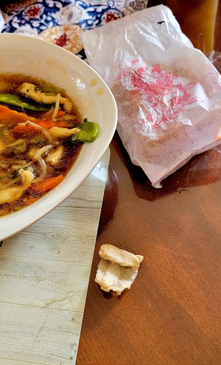 Great food! Very affordable and filling. Highly recommend the Mongolian beef. The menu’s kind of overwhelming - lots of options and no descriptions. Probably best taken tog-go. Pictured: Mongolian beef, small; Chicken curry, small; Donuts.